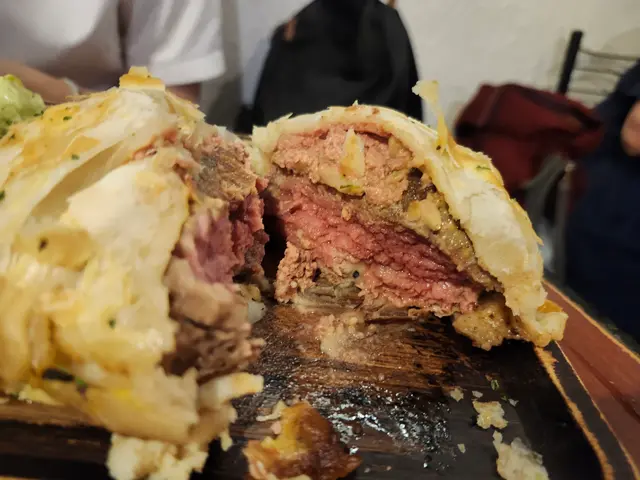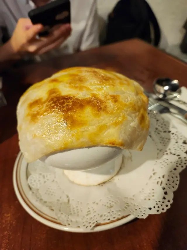 佐敦牛屋:威靈頓牛柳🥩 siuwen766Level 22025-11-04493 瀏覽 關注 週一晚佐敦覓食,「牛屋」門外的人龍說明了它的魅力。等候二十分鐘入座。選了七成熟,搭配焗薯。切開金黃酥皮的瞬間,粉紅色肉質呈現眼前。牛肉品質極佳,酥皮、鴨肝醬和蘑菇粒完美包裹著鮮嫩牛柳,口感層次分明。最驚喜的是配菜的焗薯,外皮酥脆,內裡綿密,比許多高級餐廳更見功力。餐前酥皮湯已顯用心:酥皮香脆飽滿,浸入濃湯的瞬間令人陶醉。連餐包都用心烘過,外脆內軟,簡單卻見真章。飽餐後信步廟街,驚見燈火通明的夜市重生。美食攤檔炊煙裊裊,購物攤檔人頭湧湧,遊客與本地人摩肩接踵,這份久違的熱鬧,讓這頓晚餐的滿足延續至深夜。牛屋的美味,廟街的活力,這才是香港該有的模樣。以上食評乃用戶個人意見 , 並不代表OpenRice之觀點。讚好分享佐敦牛屋:威靈頓牛柳🥩 牛屋餐廳 https://s.openrice.com/QrKT0aX1V00檢舉 張貼 評分5味道5環境5服務5衛生5抵食用餐途徑Dine In