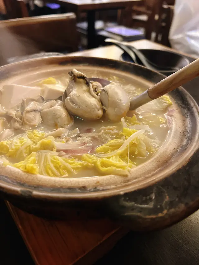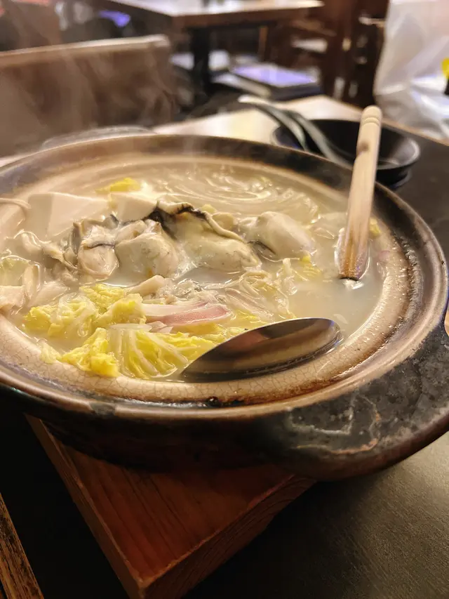 石狩廣島蠔窩湯底清甜,配上四粒大大的廣島蠔,鮮味無窮,還有豆腐、野菜、菇、粉絲,非常不錯