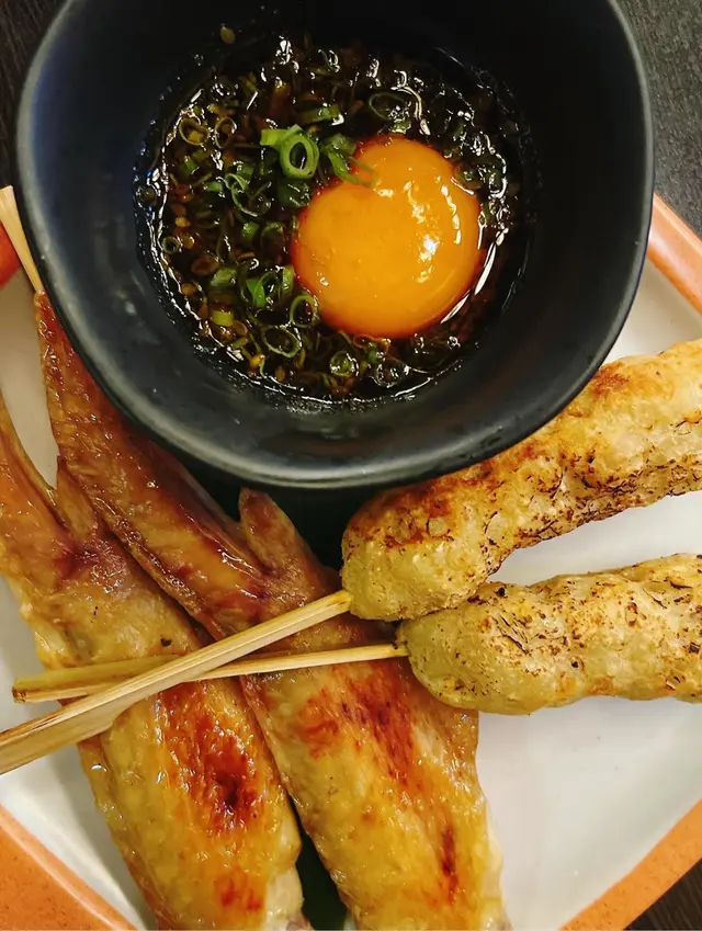 揀左兩款燒物,鹽燒雞翼皮脆肉嫩,免治雞肉棒配上月見蛋汁,好味道
