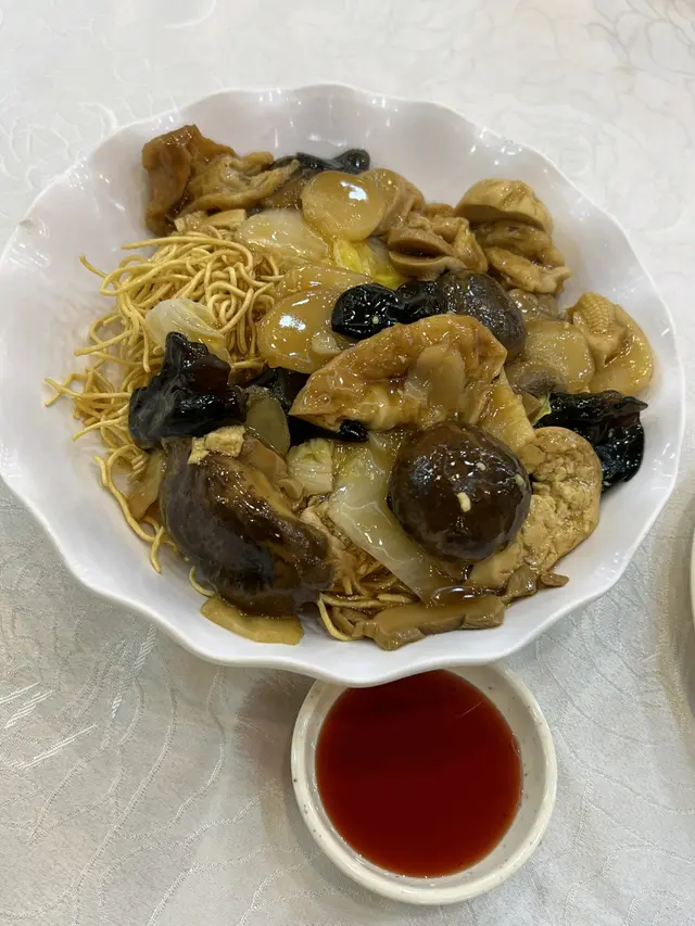 羅漢齋炒麵就只有炸過嘅麵,炸麵好韌又襟𡁻而且有少少脆脆口,冬菇腍身好味,冬菇木耳同草菇味道略為清淡,整體好一般。