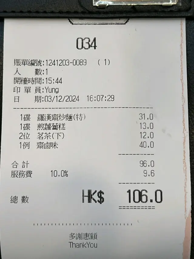 齋店裝修似去返70年代嘅時空,枱凳擺設空間較為狹窄,碗筷杯碟及店面清潔整齊,店員服務態度殷勤盡力,對顧客非常有禮貌。並且留意到佢哋有派免費飯盒比街坊,值得一讚!雖然食物水準質素一般,有機會我都會再去幫襯佢哋。
