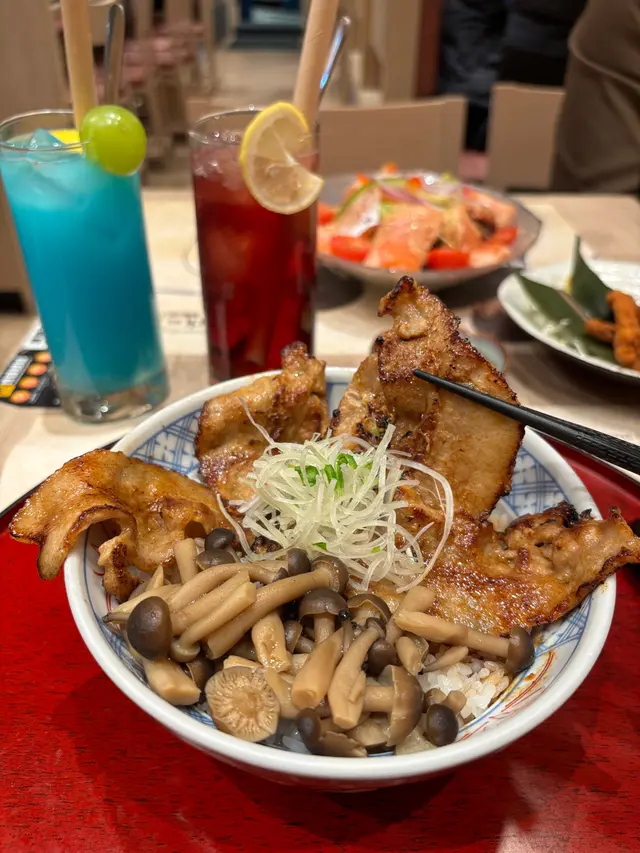 灸燒豚肉~配上香菇和葱花🔥炭火香十足💕