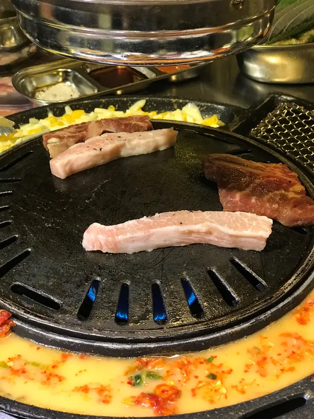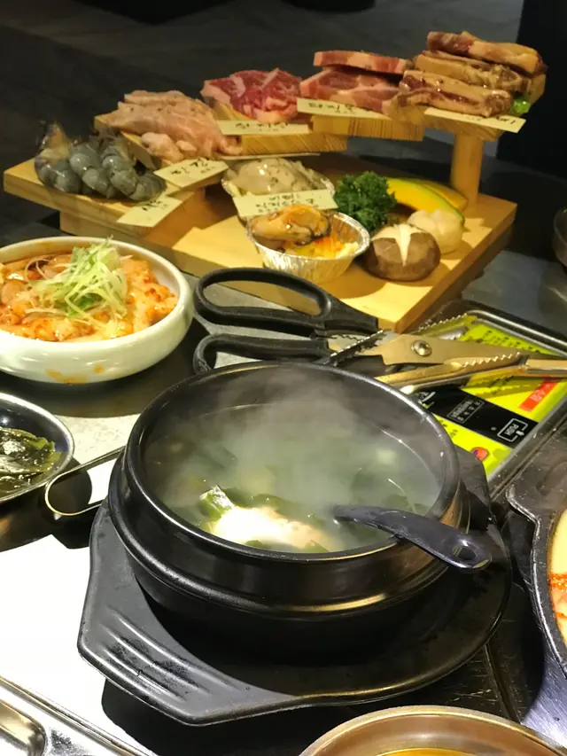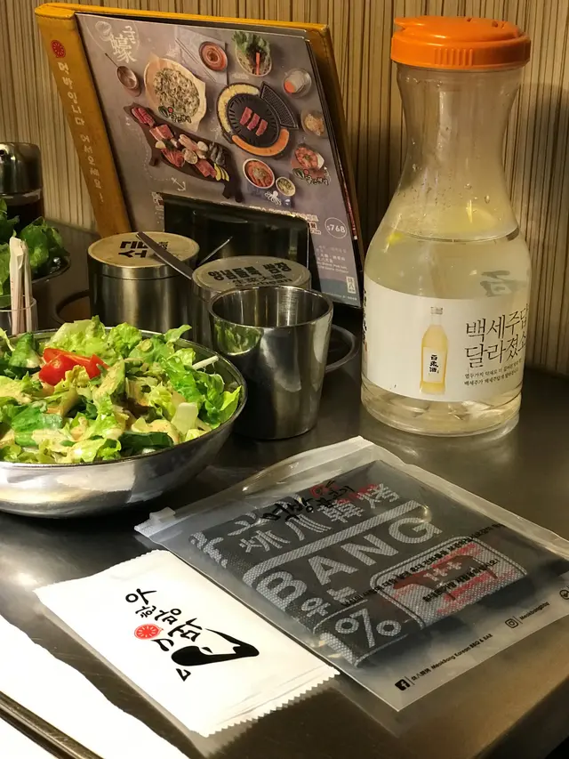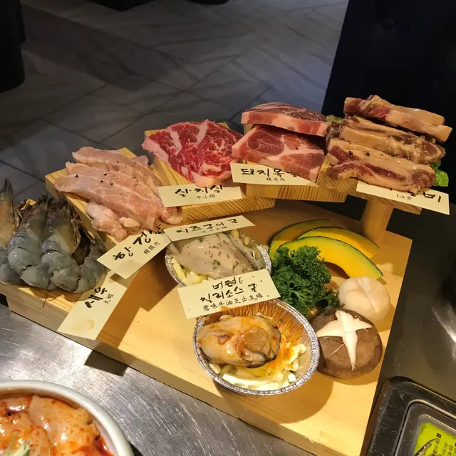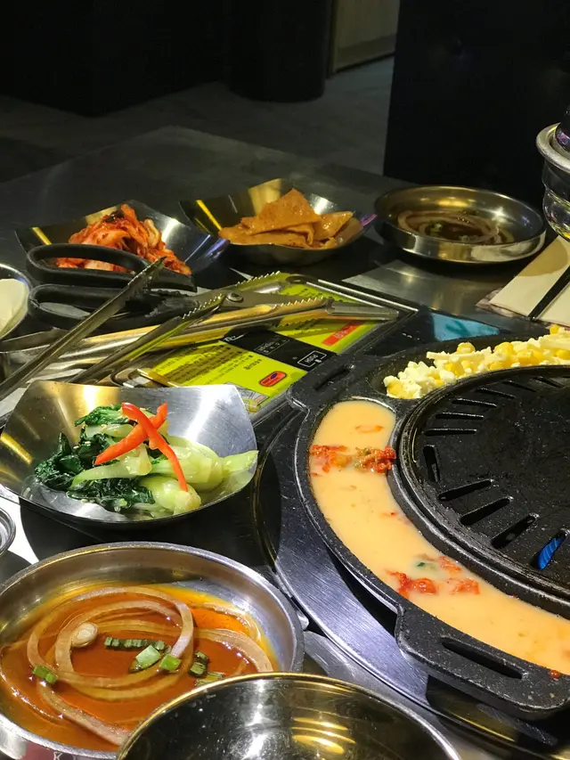 還有前菜沙律、泡菜等等, 放在爐邊的芝士粟米和泡菜蛋, 全部都係無限添加.