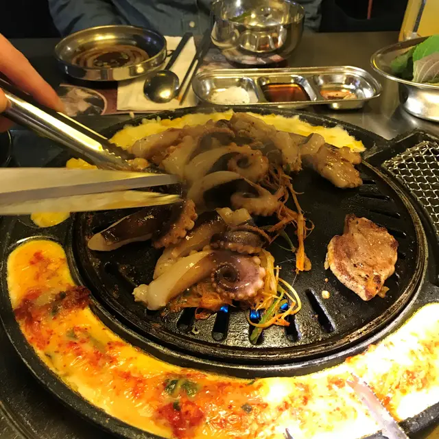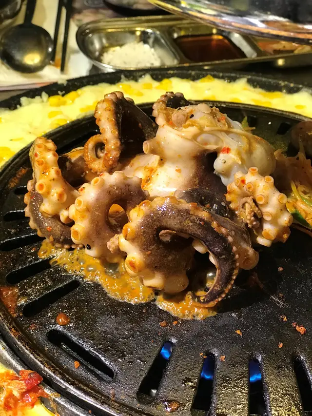 我們2人點了2人套餐, 好大份, 豬牛烤肉拼盤,一大隻八爪魚、大蝦和生蠔,這個份量足夠3人食.