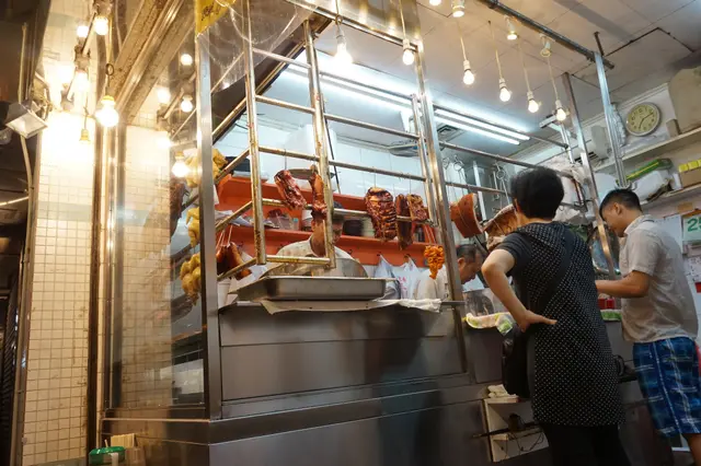 多數燒味店都不設堂食,向來都是買走的多,這裡有三四張摺枱已算不錯。一半於店內,一半在店外,店外的街道不是大街,吃塵的情況不嚴重。恰巧有位可以堂食是個bonus,不然我真的考慮把飯盒帶到附近的公園吃,想起這畫面都覺得自己很麻甩。這畫面沒有實現,晚上7時左右到達,幸還有座位、幸還有只賣剩兩三條的叉燒。主婦們買菜時間已過,進來斬料作菜的人不多,但不排除有「臨急抱佛腳」的人來買燒味救急,欲免向隅,建議晚上七時前到訪。
