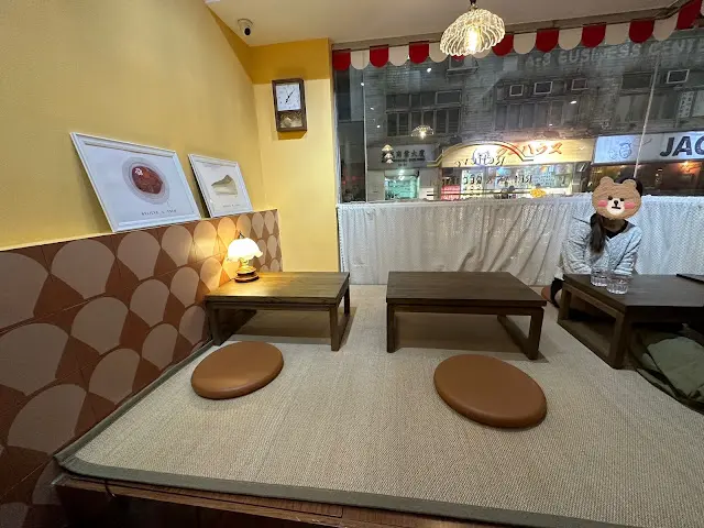 餐廳具昭和風格,木枱椅、牆身、玻璃吊燈及日式擺設,復古之感,枱與枱之間有一定的距離,感覺有私人空間,設有榻榻米座位,增添和風感覺。