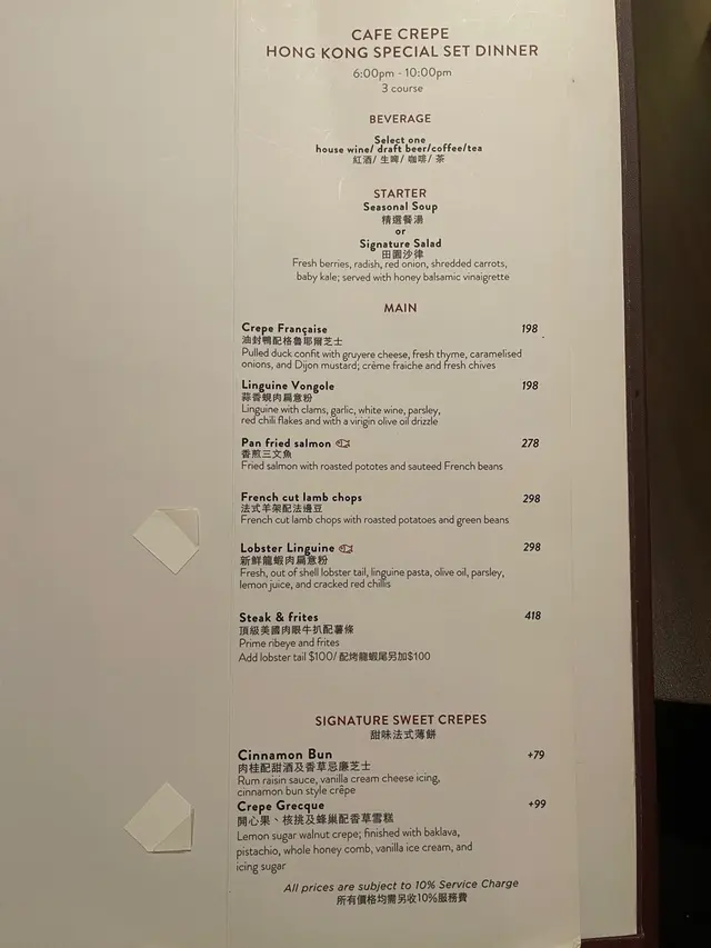 佢喺香港有三間分店,之前喺尖沙咀食過甜既可麗餅,印象好好食,今次我地想試個鹹嘅,我哋揀左兩個dinner set