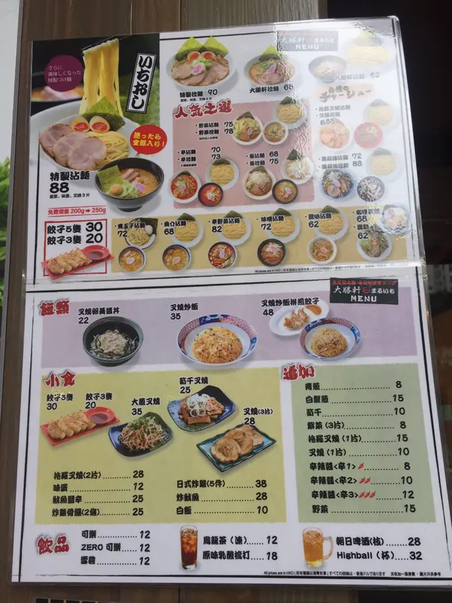 來自東京池袋大勝軒 KiikkiLevel 32017-08-14314 瀏覽 關注 由大勝軒創辦人有沾麵之父之稱山岸 一雄的徒弟開的大勝軒丸一,聽完好似好吸引,於是一於去試吓是否真的與日本店的一樣。向來喜歡吃沾麵,特別是魚介味的沾麵,因為不太喜歡豬骨湯的濃郁豬骨麵,所以來到出名食沾麵的拉麵店當然選擇沾麵啦!這裡的沾麵有成十款,總有一款啱你口味!麵底有正常(200g)同加大(250g)兩種選擇,價錢一樣。選擇了魚介沾麵及黑醬油沾麵,兩碗均是增量的份量。魚介沾麵湯底魚介味濃郁,有大概30g的豬肉,但湯不夠熱,比起在京都拉麵小路店大勝軒吃到的稀一點,質素只有日本的6成至7成。魚介沾麵$68而黑醬油拉麵好像只有黑醬油味,喜歡重口味的朋友可以一試,個人覺得湯底太鹹太油膩!黑醬油沾麵$72以上食評乃用戶個人意見 , 並不代表OpenRice之觀點。讚好分享來自東京池袋大勝軒 大勝軒丸一 https://s.openrice.com/QrKT0sd4h00檢舉 張貼 評分3味道4環境3服務4衛生4抵食用餐日期2017-07-29等候時間3 分鐘 (Dine In)人均消費$80 (Lunch)