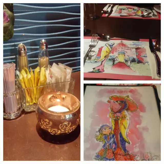紅粉佳人位置比較近油麻地, 從地鐵站C出口步行到餐廳約十分鐘路程o 餐廳門面比較普通, 店內燈光昏暗, 配以粉紅為主題, 每枱都點著蠟燭, 加上寧靜的環境, 非常有情調o 這裡的枱墊圖畫非常有趣, 也解開了紅粉佳人的身份, 原來這位佳人是條穿著粉紅色大衣的三文魚小姐, 可想而知, 這裡主要賣點的是三文魚吧!