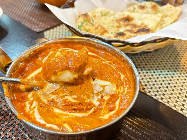 Butter Chicken:一上菜已經聞陣陣香氣,主打味道當然就係印度牛油,仲有好香嘅薑黃等香料味,上面加少少鮮奶油,口感順滑柔和,味道甜甜的加一丁點辣度,非常適合我地嘅口味。雞肉柔嫩多汁,吸收晒醬汁味道,非常好食。當然要配上烤餅一齊食。揀左兩款唔同嘅烤餅試試。