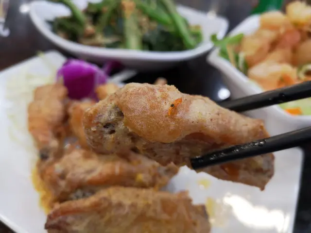 薄薄嘅一層鹹蛋黃漿包著炸雞翼, 非常甘香惹味,唔会好咸或者好乾, 雞翼熱辣辣裏面仲好juicy。 好美味嘅小食。