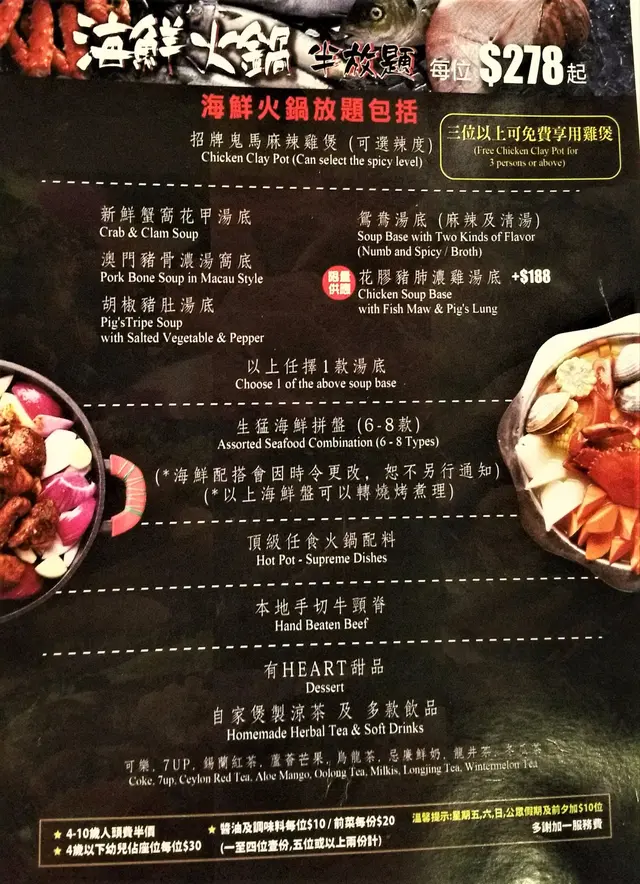 雞煲加火鍋$278位,加一