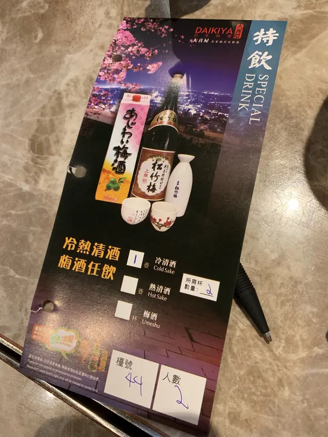 保持水準既放題 Keith0515Level 22019-02-23701 views Follow 同朋友起金鐘考完試就諗住賀賀佢,最後去左銅鑼灣間大喜屋,果日星期二黎,夜晚九點時段居然唔洗停位,勁難得刺身拼盤依間啲刺身好新鮮,款式又多,我地兩個人都食左3盤之前我都淨係食刺身,今次試下啲熟食。有驚喜喎!原來大喜屋啲熟食都ok,我地叫左炒蜆,無沙,味道好。另外仲有牛柳粒,9成熟但都唔硬,幾正。本來我地以為無酒,突然發現居然有清酒!即刻點黎飲下,依款酒精無咁高,幾岩飲,太烈反而配野食唔好,我朋友唔飲酒既都破例飲左兩杯2百頭食到好飽,好抵,滿載而歸The above review is the personal opinion of a user which does not represent OpenRice's point of view.LikeShare大喜屋 https://s.openrice.com/QrKT0ouio00Report Post Ratings4Taste4Decor4Service4Hygiene4ValueRecommended Dishes刺身拼盤Date of Visit2019-02-12Dining MethodDine InSpending Per Head$230 (Last Night Supper)