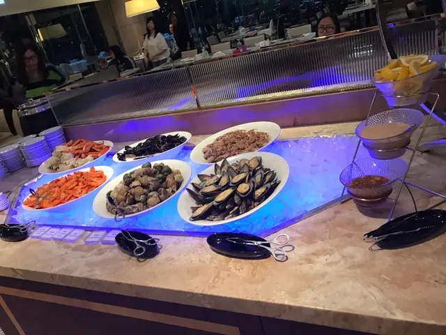 以我食過咁多間自助餐黎講,如佢無買一送一算唔抵,正價6百幾蚊一位,但無生蠔,而因佢加枱加到出樓梯底,人真係好多,而當天我地就坐樓梯底,得長腳蟹蝦螺之類,因人太多關係,真係要排長龍去夾,都還可以既,但因無至愛既生蠔,都食好少,而老公為左等無咁多人先夾變左得d殘骸咁,如想食至靚就要畀d時間去排長龍了