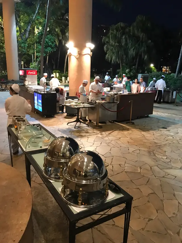 出面設置燒野區應該係該酒店最突色既一樣野黎,d燒牛燒雞翼都好好味,佢仲有個蟹皇魚肚羹超好味,老公食左兩碗,要排隊去拎,佢會即場倒落瓦碗再加熱,落埋d配料,一流~老公連食兩碗仲想追加可惜d煲仔洗吳切暫停供應,等到供應翻又排曬長龍唯有放棄:(琵琶燒鴨配酸梅醬都好食,仲有燒乳豬