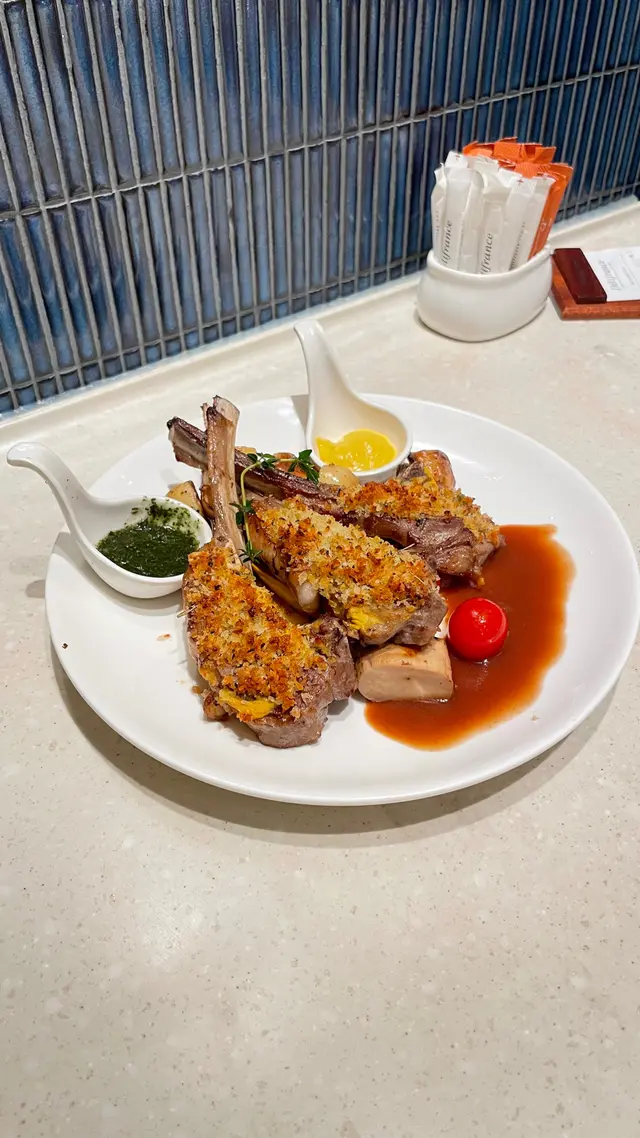 上菜速度都唔錯,都一樣一樣嘢咁送到就唔會擺到成張枱都係,可以食到食材嘅溫度😚夜啲又set入面,我最鍾意嘅係羊架同埋香蒜海鮮炒意粉🤤個羊架處理得非常好,雖然佢唔使我哋揀熟度,但佢幫我哋處理得啱啱好,鮮嫩而多汁,啲羊味就啱啱好,加埋佢外脆嘅麵包糠,外脆內軟咁食真係唔錯😌
