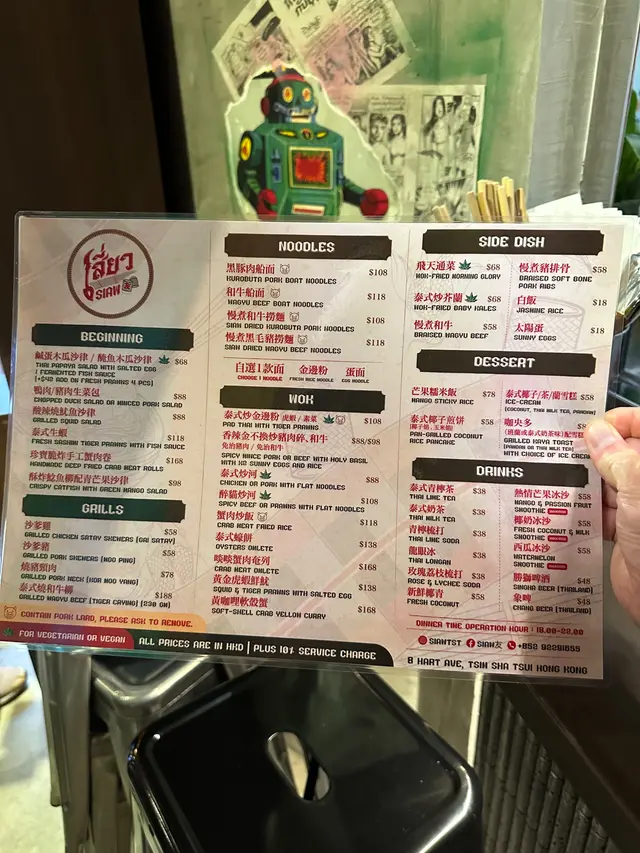 傍晚時分路經赫德道 見到呢間新開嘅餐廳,從外觀所看 似係東南亞菜式嘅餐廳,入到去先確定係做泰國菜。 進門時位貌似泰國人的男經理用英語打招呼,餐廳內大約有三、四成客人,我選了個向街嘅窗邊位坐,女待應也是泰國人 先用英語介紹菜式,我一睇到有Pad See Ew Kai 泰式炒雞河就即點,三數分鐘後就出餐上枱,賣相正宗、吸引,食落即時俾到我在曼谷食嘅感覺,非常好味。 價錢上同九龍城區嘅同行略貴,但始終係尖沙咀區,無可厚非。 下次一定要再嚟試佢個Pad Krapao 打拋飯(泰式辣肉碎飯)。