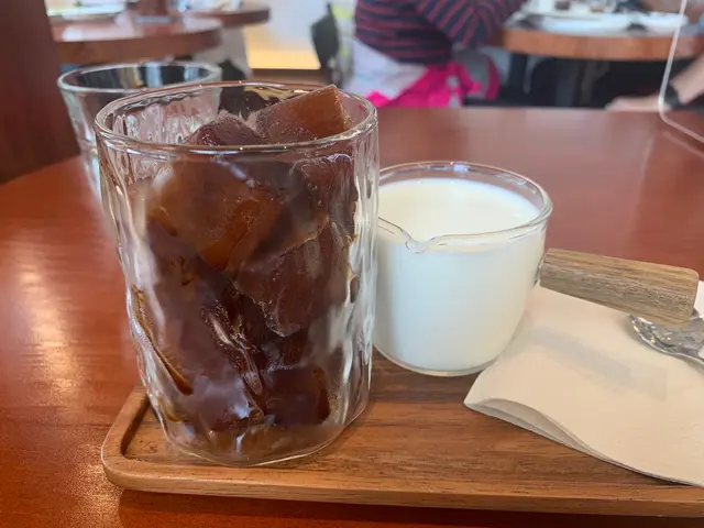 很可愛的設置,自己倒明治奶,撞擊Black Rock(咖啡冰)產生自己喜歡的咖啡虎紋。最初是濃烈的奶味,啡冰漸漸融化,咖啡味越來越濃,個性越來越明顯,喜歡變化,很有趣的飲用體驗。