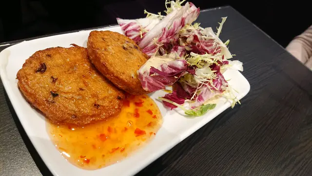 豬排骨好大條,幾乎同我既手臂一樣。望落色水唔錯, 切落發現其實肉比想象中小,但都飽既。旁邊有個醬汁,不過我就唔推薦點,因爲原本舊豬排骨已經好夠味。