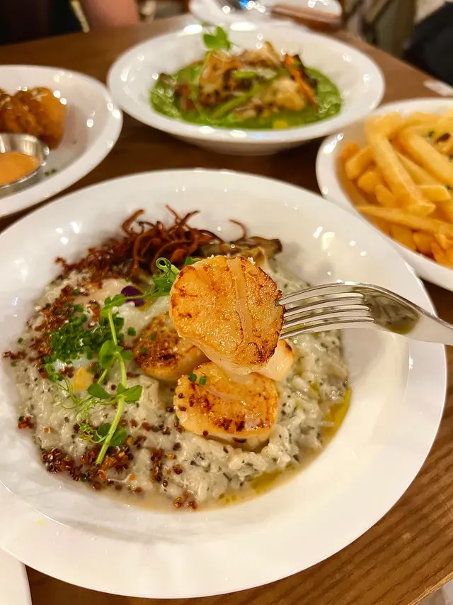 值得一嘗既cafe ricerice11Level 32022-07-2493 views Follow 同朋友行街經過見到喱間幾有文青感覺既cafe,於是決定入去試下😜今次叫左雙人品賞套餐。松露薯條🍟薯條炸得好香脆,點上黑松露嘅汁,同薯條係絕配💓💓水牛城雞中翼🍗雞翼外皮炸得好香脆,而且大大隻🤤食落鹹鹹辣辣,係邪惡之選😈黑松露干貝奶油燉飯一嚟到已經聞到好大陣好香既黑松露味🥰入面有四粒大大粒嘅帶子,煎得兩面都係金黃色💓食落好鮮味,配上黑松露汁既飯,簡直係我嘅最愛🤤喜歡食松露嘅人一定要叫😽羅勒松子蔬食燉飯🌿第一次試羅勒既食物,估唔到又幾好食🤣好有新鮮感,而且好健康既感覺😆應該幾適合素食既朋友👍🏻☺️The above review is the personal opinion of a user which does not represent OpenRice's point of view.LikeShare值得一嘗既cafe 桔梗 https://s.openrice.com/QrKT0x3f400Report Post Ratings4Taste5Decor4Service5Hygiene4ValueDining MethodDine In