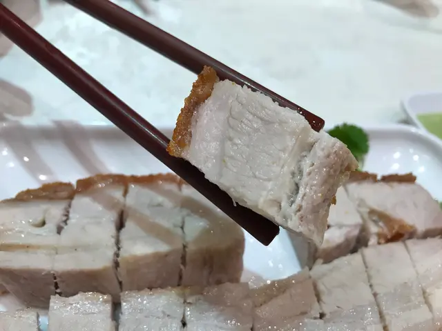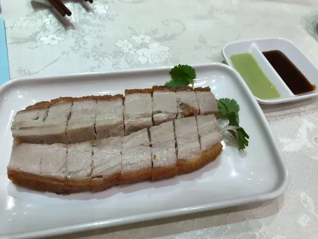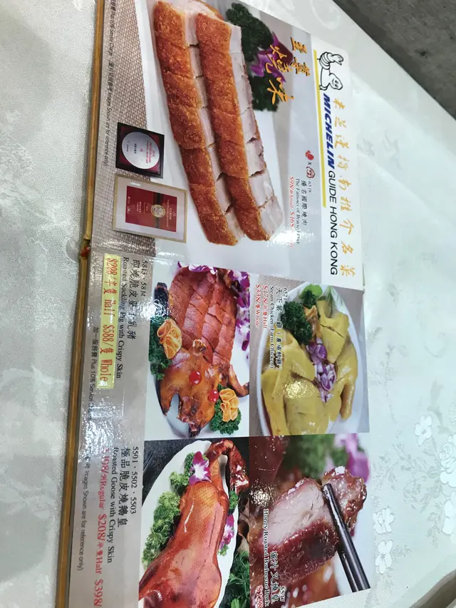 燒肉:皮很鬆脆,感覺似食一塊鬆化既餅乾咁,肉既部分就肥瘦相間,調味唔會過咸遮蓋肉味,但食開重味既人就可能會覺得偏淡,不過佢亦跟左一兜芥末同乳豬醬比你,芥末醬味道輕微刺激,令你連食幾舊燒肉都唔會覺得膩,而乳豬醬亦算聰明配搭,因為乳豬醬點咩都好食,哈哈。一碟燒肉好唔好,我覺得最緊要皮脆肉嫩,而且水準穩定,而容記亦做到呢幾點,唔怪之得拎到米芝蓮