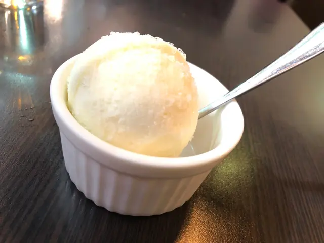 最後,侍應小姐遞上豆乳雪糕作為今餐的甜品,雪糕質感有點似雪葩,味道偏淡,沒有一般雪糕的甜味和奶味,但豆味非常濃郁,感覺幾清新,把這一餐作了一個完美的終結。