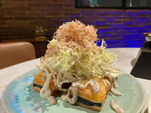 此外,我還點了黑松露墨魚蝦多士。這道菜以墨魚和蝦為主,加入了黑松露的香味,讓整道菜的口感更加豐富。多士的外皮煎得香脆,內裡的墨魚和蝦肉鮮美多汁,非常適合當成下酒菜或者小點心。