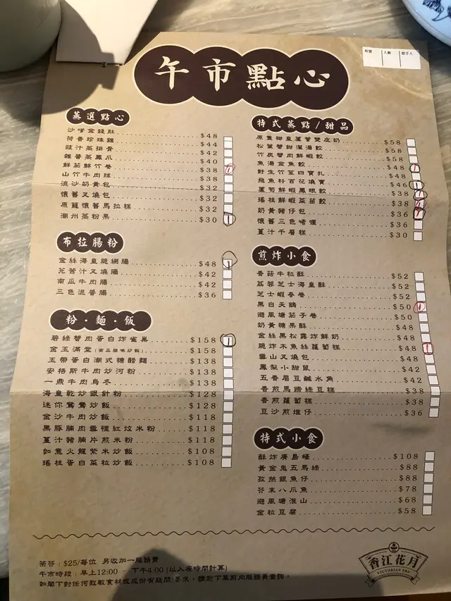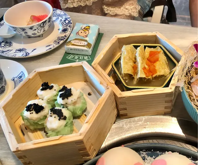 整體來說,餐廳的裝飾和擺設,很有心思,讓人有一種目不暇給的感覺,坐位舒適,食具整潔,食物味道不錯,尤其有一些特色點心,很適合打卡,點心價格屬中高檔,$30-50,粉丶麵丶飯$108- $158,每位茶錢$25 ,較為昂貴!侍應服務態度良好!