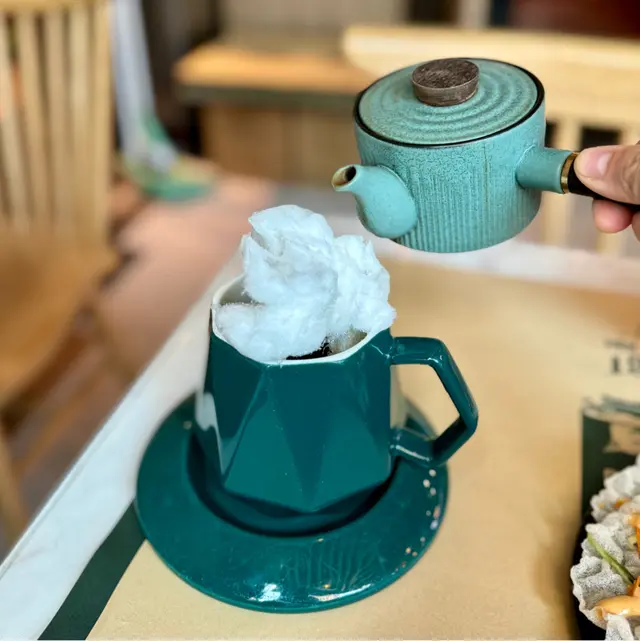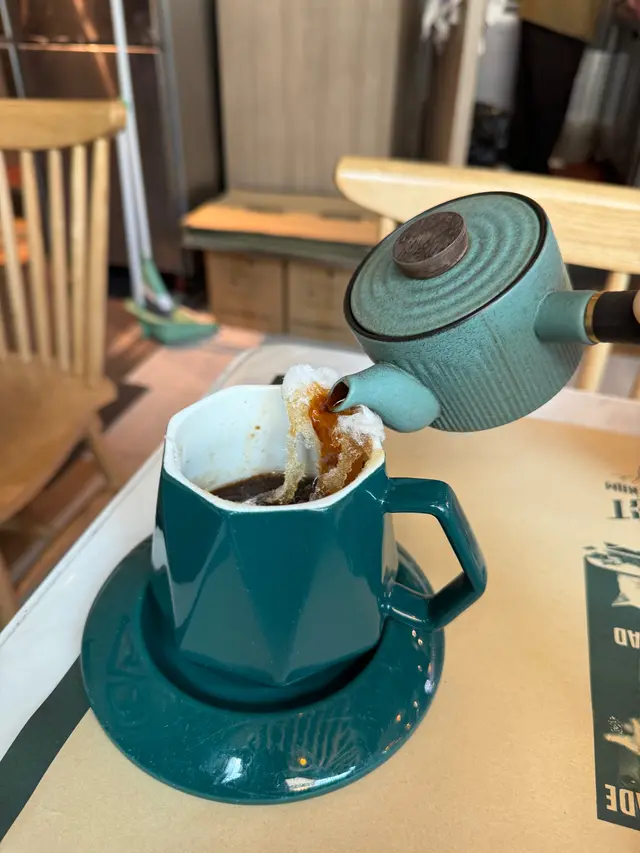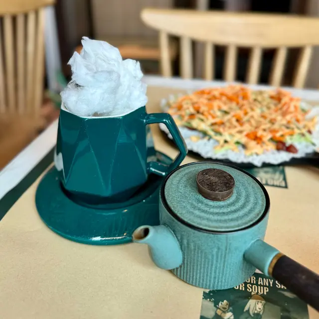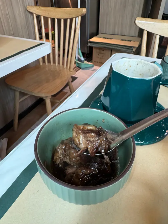 好吸睛嘅「咖啡」!咖啡杯上放咗一球大棉花糖,用咖啡壺倒入香濃嘅越南咖啡,棉花糖會慢慢溶化,形成集香濃與香甜於一身嘅醬汁,層次豐富!咖啡杯內裝有炆得軟腍入味嘅豬軟骨,食落帶淡淡咖啡香氣,份量都好多!