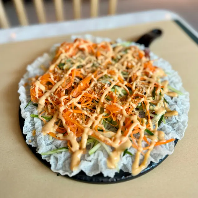用米紙做薄餅底,香脆可口,上面鋪滿紅蘿蔔及青瓜絲,清新開胃,而且加咗臘腸粒增添鹹香。呢道開胃菜好適合夏天食呢!