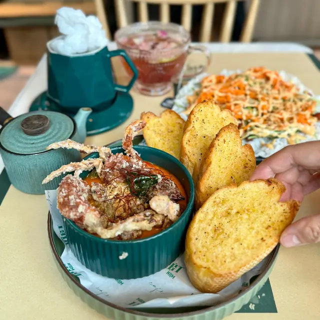 越式咖喱軟殼蟹配蒜茸法包( $108)