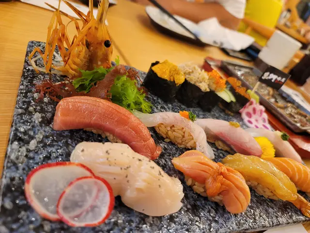 另外仲叫左鐵板燒海鮮雜菌,有魷魚鮑魚同蝦,燒手掌咁大凡立貝配海膽,大板燒,真係好豐富。未去到日本,但有正宗日本菜可以解下癮。