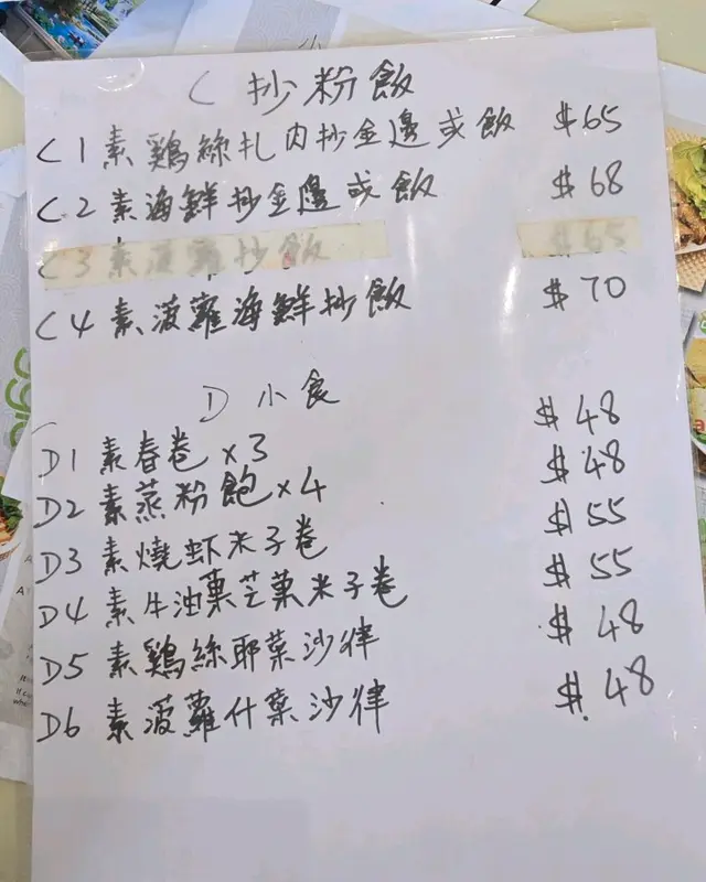 食物本身係五辛素,但全部都可以走五辛,老闆娘係落單時會特意問使唔使走五辛,十分體貼。枱面上有一壺充滿辣椒嘅素魚露,係有五辛,冇五辛嘅版本可以問老闆娘攞,素魚露味道酸酸辣辣,可以用嚟撈檬粉,我亦見到有客人倒入湯河到調味。
