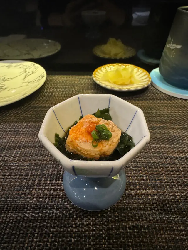 1. 沖繩水雲配松葉蟹肉:這道前菜口感極佳,搭配了酸醋來吃,非常醒胃。