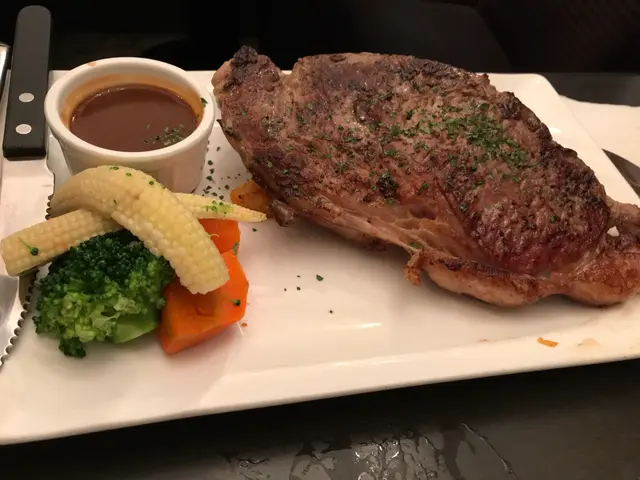 主菜有280克美國頂級肉眼牛扒配燒汁