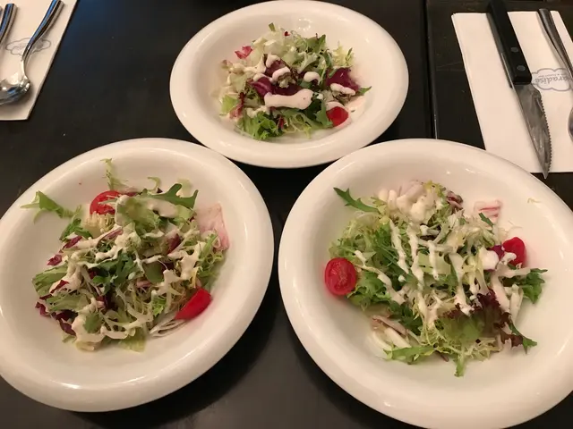 前菜有田園沙津和忌廉餐湯,沙津都幾大份