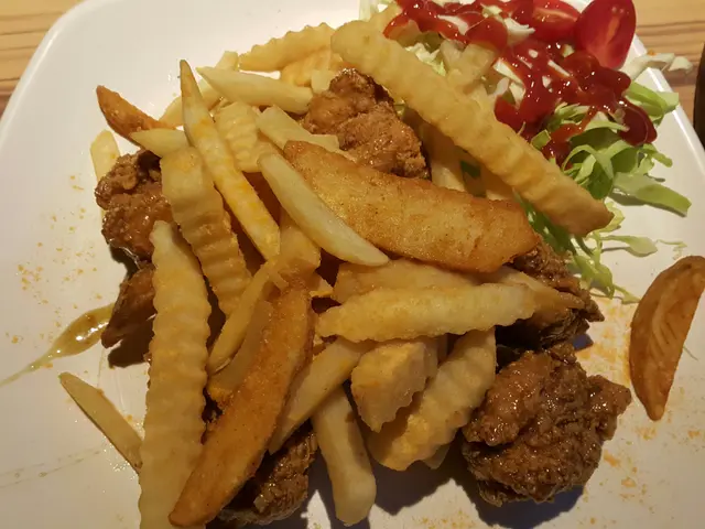 炸雞好卜卜脆,而且仲有好多薯條伴菜。最後,芝士泡菜炒飯都唔錯,有芝士配泡菜炒飯令到味道唔會剩係食到辣味。下次再去呢間餐廳一定會再嘗試更多其他特色食物。