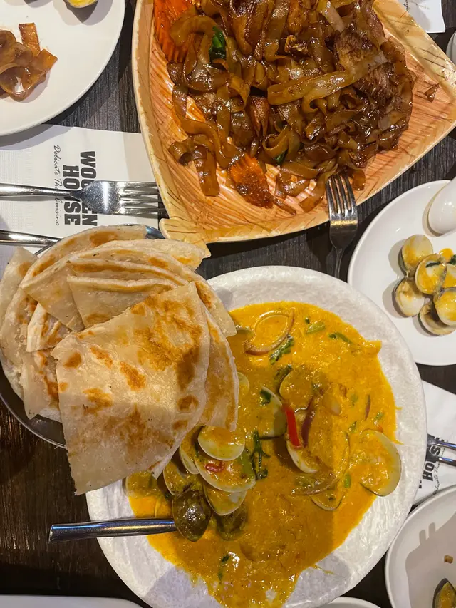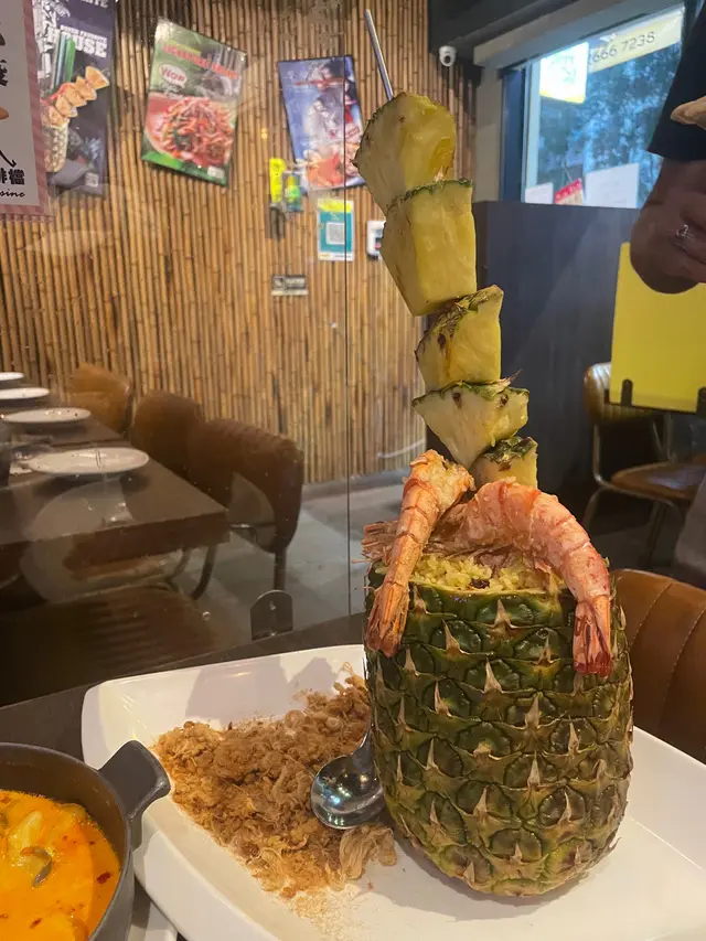 我哋3個人去食,食唔到太多所以淨係叫咗4樣嘢~分別係冬陰功湯、咖喱蜆配薄餅、豬頸肉炒河同菠蘿炒飯。首先上冬陰功湯,對我唔食得辣來講都真係幾辣🥵 不過佢入邊啲料(蝦同菇)就唔太辣,勉強都仲食到🤣🤣 但湯飲咗兩啖就飲唔到了🥺 食得辣嘅爸爸就好滿意🤣🤣 之後就上咖喱蜆了😍 見到個賣相已經好滿意,味道好濃郁,薄餅浸滿晒咖喱超好味😍😍 蜆嘅份量都唔少,而且十分大隻!價錢又唔貴,好滿意🥰🥰 之後就係主食,豬頸肉炒河就普普通通,冇咩特別,豬頸肉小小柴,唔建議叫🥺🥺 菠蘿炒飯個賣相好驚喜,好大串菠蘿好啱打卡🤣🤣 炒飯份量都好大,有晒提子乾同肉鬆👍🏻👍🏻👍🏻 不過食完最後已經好飽了,炒飯都食唔晒,三個人可能只係食到三道菜,叫四樣真係太多🤣🤣🤣