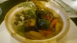 全晚最具特色的是這道豉椒豬寸骨意大利飯($138),竟然用了煲仔飯的煲仔作盛載器具,是十分有趣而具心思的賣相。內裡的是香味撲鼻的意大利飯,不過這種香味又是甚具中菜特色的豉椒味,真是中西大結合了。豬寸骨是兩件大大份的豬髀,用刀叉很容易就可以切開,味道也相當討好。