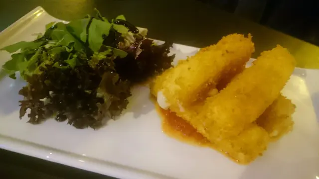 美酒又怎能沒有佐酒小食?香味濃郁的炸芝士條($102/4條)是不錯的選擇。表皮香脆,中間半浴的芝士有拉絲效果。如果嫌味道太重的話可以蘸一些店家特製的鮮茄醬,減低滯膩的感覺。