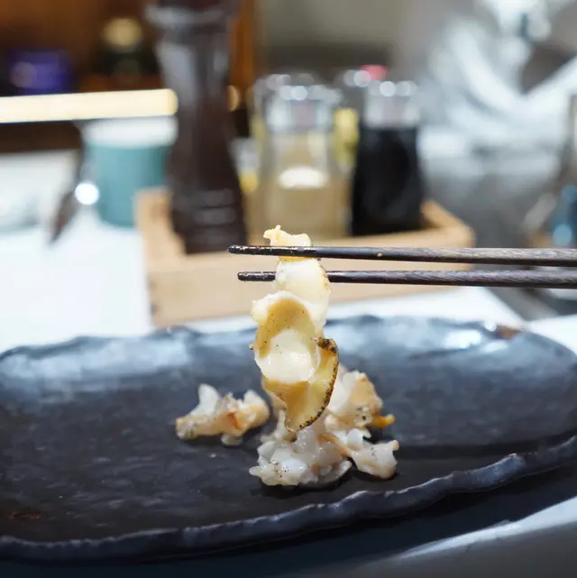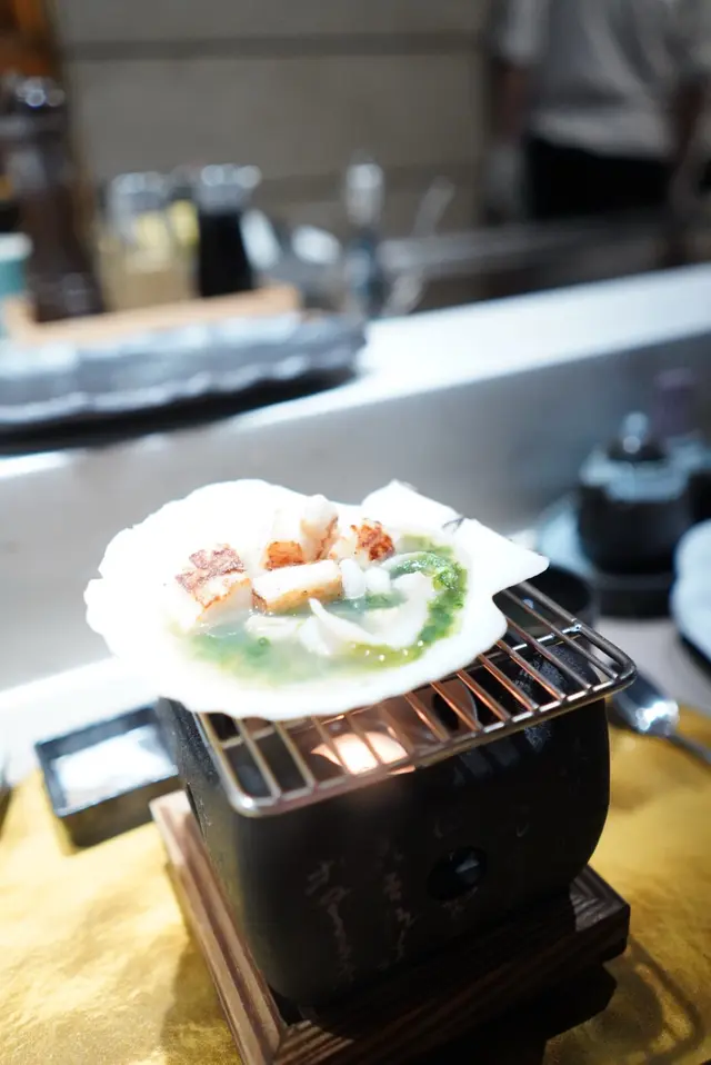 帆立貝係用返個殼裝住,入面仲有個紫菜清湯要飲埋!店方仲好細心用個爐熱住,唔怕d湯變凍。