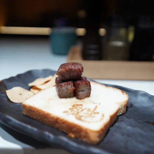 有厚燒同薄切揀,厚燒就係切成粒粒咁燒,一咬開就爆晒d油花出黎!果然係A5!唔好睇個樣好似好熟,其實咬開係岩岩好medium!