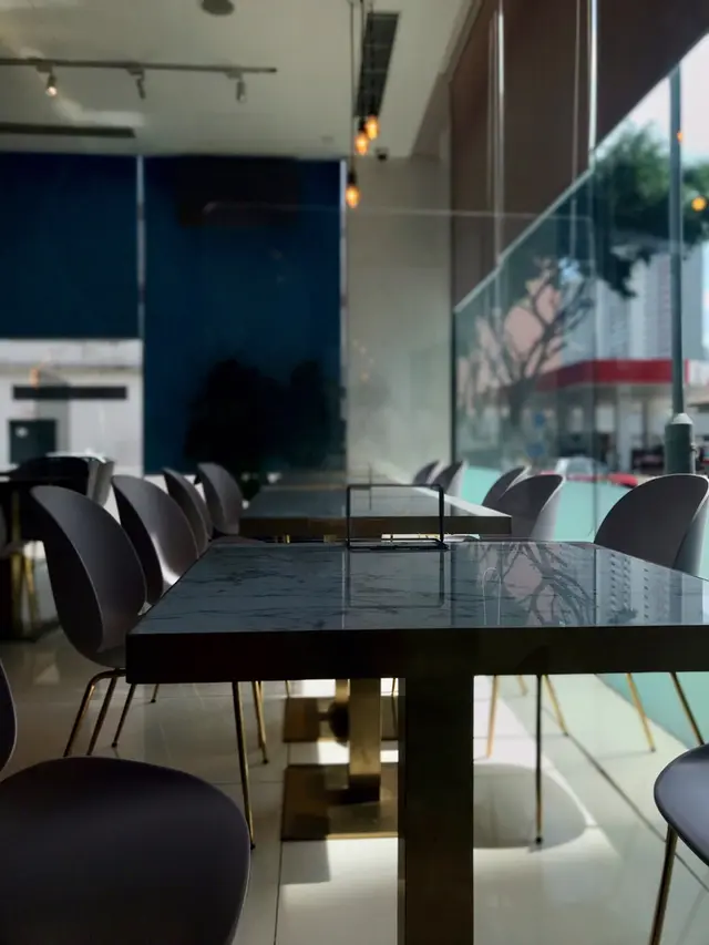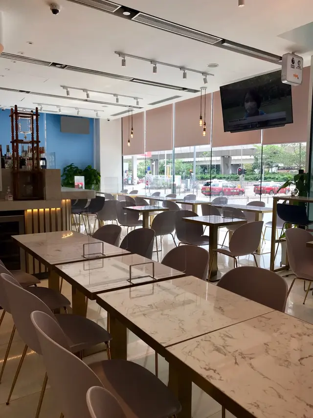 餐廳用左落地玻璃既設計,空間感同透光度十足,播住柔和的音樂🎵坐窗邊望住出面一排樹🌳好岩叫返杯咖啡☕️同朋友享受一個寧靜悠閒的下午