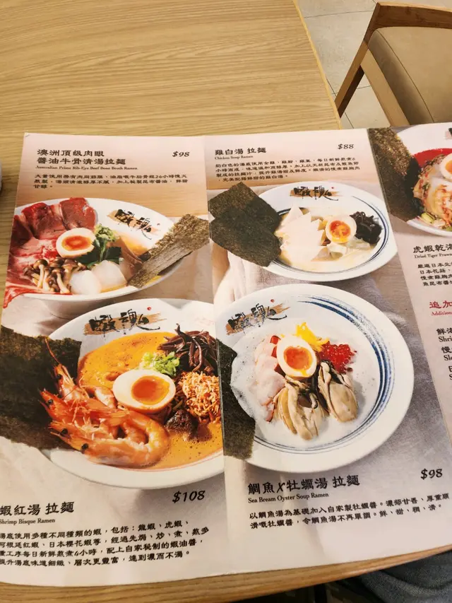 蝦魂舖位位置就非常就腳,港鐵站出口行兩分鐘就到,但唔知係咪人流比較旺,啲烏蠅飛來飛去,加上又會有啲人係舖位旁邊等人,傾計聲睇片聲咳嗽聲好影響食麵嘅客人。蝦魂座位都有差唔多三十個,不斷有人入蝦魂,不過侍應只得一個,非常忙碌,所以變成出品很慢,我等了35分鐘才有麵到。另外上麵又冇俾筷子,又要自己去攞,冰水飲晒又係要自己去攞,希望遲啲請到人或者行順咗會更加好啲~