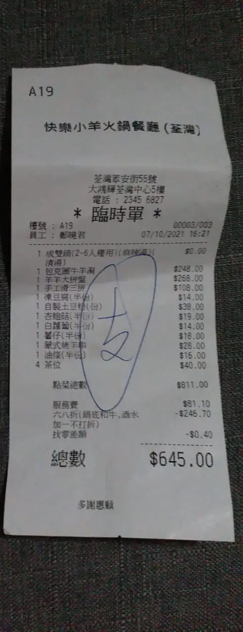 3間分店快樂小羊都有去過食超碼有十次,覺得快樂小羊係一間唔錯既打邊爐既鋪,今次係第二次到荃灣分店打邊爐,下就2點零鐘去食,得我地一台,員工都無咩做,行行企企,問拎調味料,眼神表示得唔情願,其實如果佢調味料開放出黎比客人拎我唔洗麻煩佢,次次去親快樂小羊都有叫