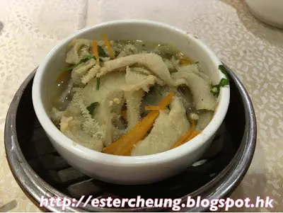 食前先將粉果快手浸一下充滿火腿鮮香的高湯