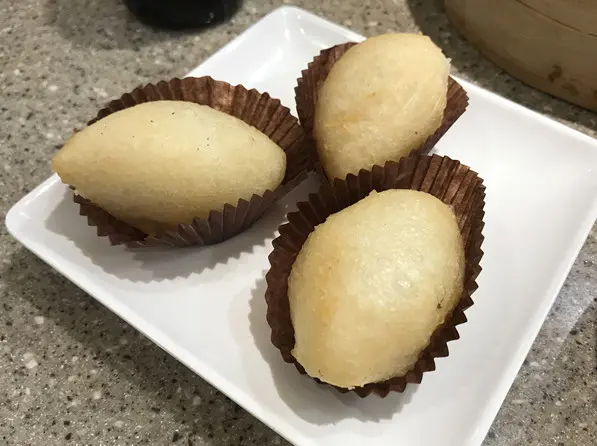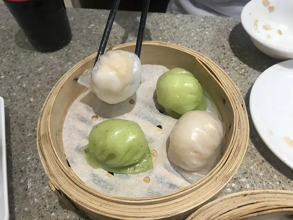 一上枱,見到 4 隻蝦餃的其中兩隻的皮係青綠色,其實是加了菜而製成的,真係好特別。
