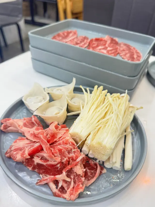 火鍋配料:有厚切安格斯肥牛/牛板腱/自家包餃子/不同款式丸子/菜/菇/水魷/鵝腸/冷門少少黃喉都有等等,起碼有2x款,重點厚切安格斯牛必食,超濃牛肉味唔鞋唔un,好過外間肥牛好多倍,自家制餃子直情完勝出面雪藏餃,皮薄餡靚食得出人手逐隻包。