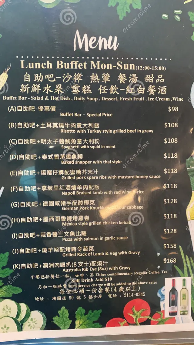 附近觀塘返工,都唔係第一次嚟。主要因為有semi-buffet又有紅酒白酒任飲,價錢唔算貴,而食物質素尚可。餐牌好似間唔中都會有更新,同上一次嚟對比多左幾款新菜色。