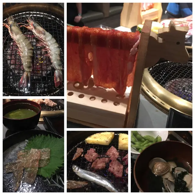 另外仲有叫咗幾款牛,最好味我覺得係有骨嘅岩塩牛仔骨,可能因為油份多d同平均d,另外牛腹肉同牛小排都唔錯! 厚切牛舌我有少少失望原因係佢嗰日唔係切厚條而係薄切(半cm), 味道ok 只係覺得厚切可能燒起黎會好味d。其他肉類不過不失…… 虎蝦真係幾大隻同爽,帶子亦甜!